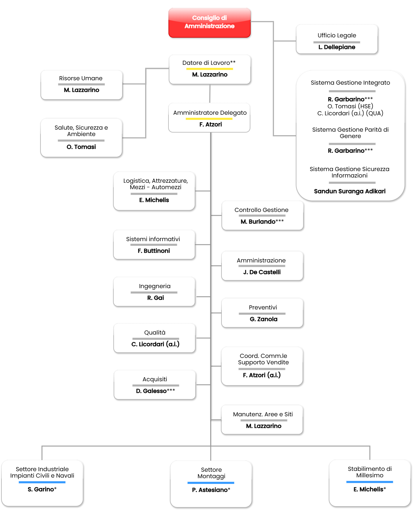 In linea con gli standard stabiliti dalle best practice nazionali ed internazionali, il nostro Sistema di Governance ha come scopo principale quello di guidare l’Impresa attraverso la complessità delle situazioni in cui opera, indirizzandola verso soluzioni rispettose della legalità e profittevoli a lungo termine.